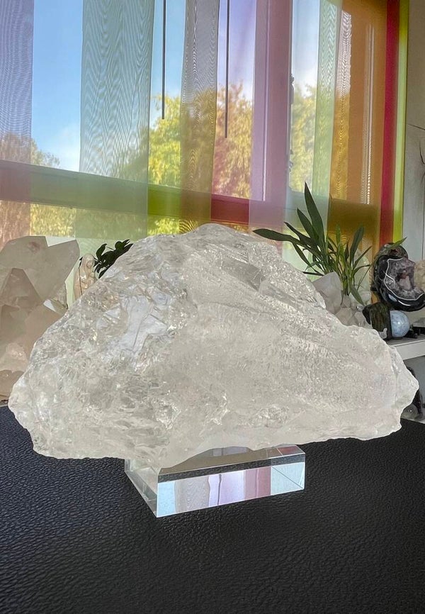 Prachtige heldere Root of Lemurian Kwarts uit Corinto, Minas Gerais, Brazilië, ruw op sokkel, groot