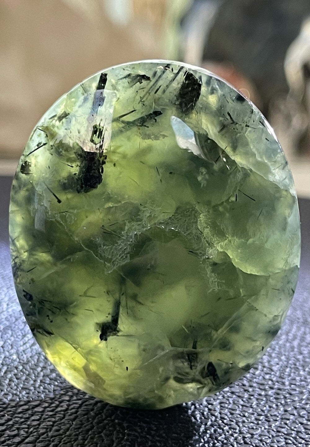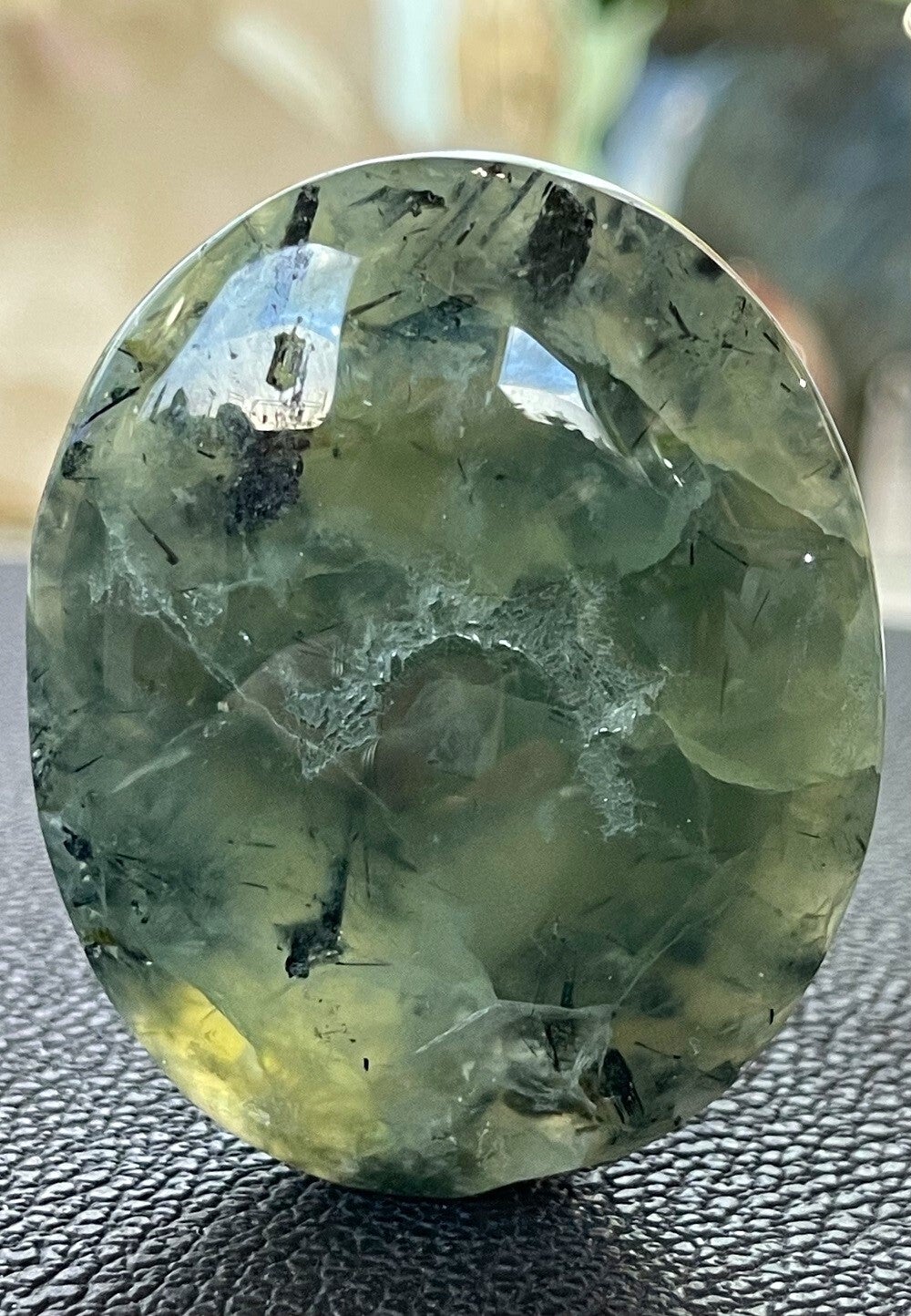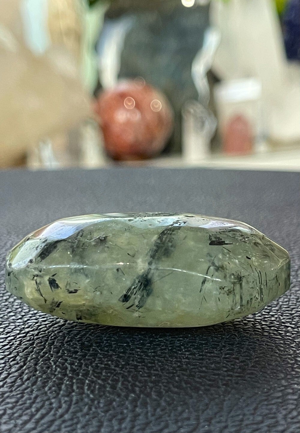 Prachtige Prehniet met Toermalijn handsteen, medium