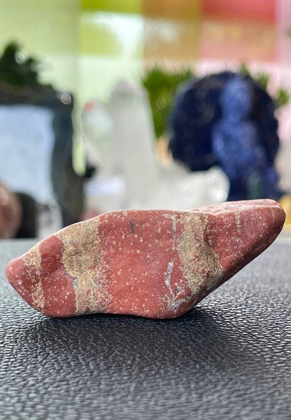 Naast de algemene eigenschappen van Jaspis is Rode Jaspis één van de meest dynamische en activerende Jaspis soorten. Het werkt aardend en bevordert de energiedoorstroming door blokkades te doorbreken in de onderste chakra's en knieën.