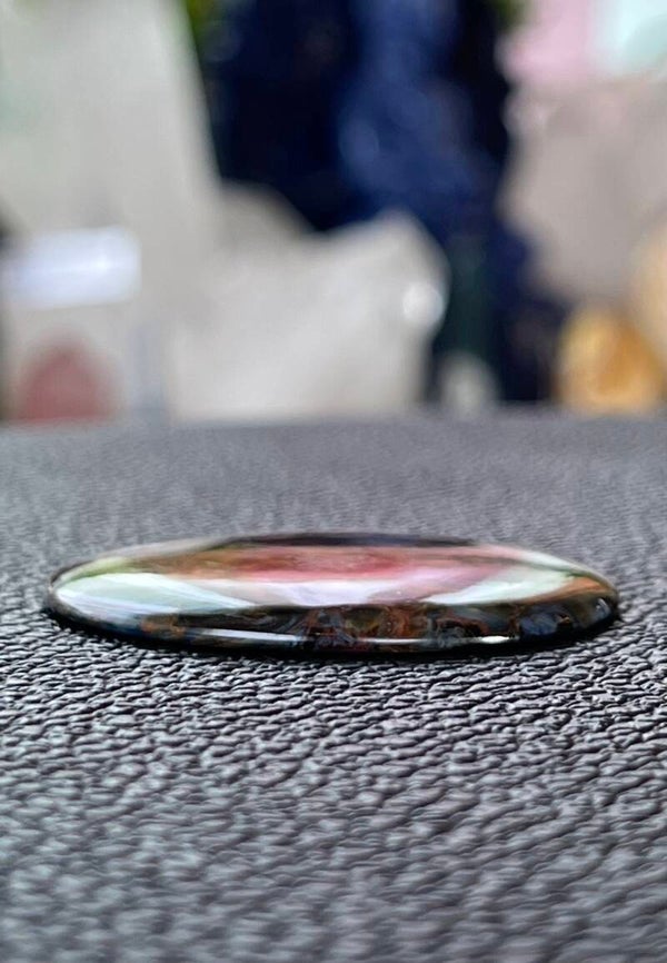 Nelliet met Pietersiet en Tijgeroog edelsteen cabochon met vlakke achterkant rond, medium