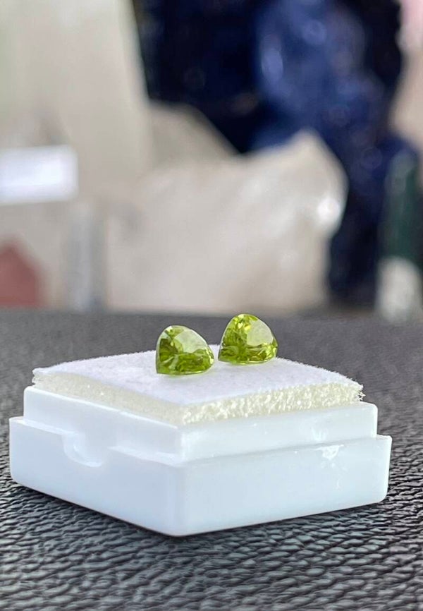 Peridoot edelsteen facet geslepen druppelvorm met beetje inclusion, uit Arizona, klein, per paar, set van 2