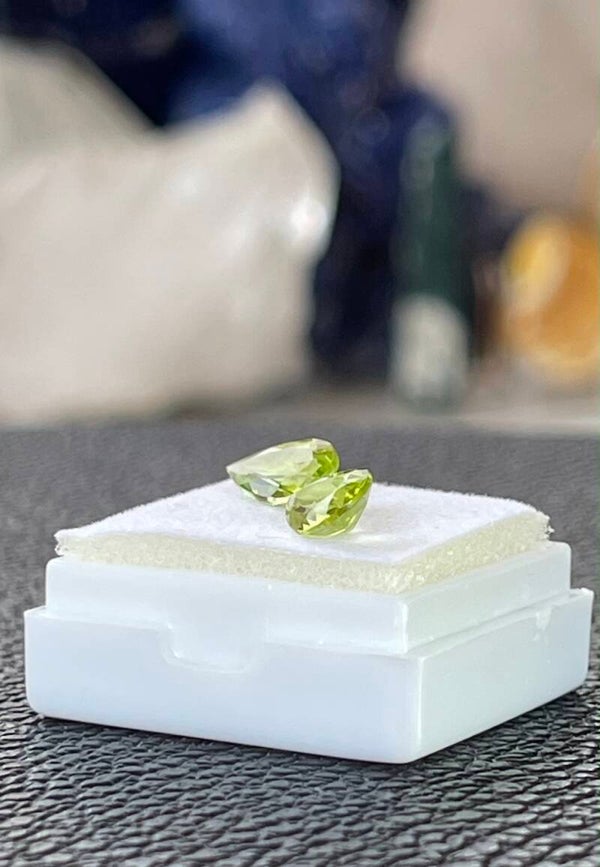 Peridoot edelsteen facet geslepen druppelvorm met beetje inclusion, uit Arizona, klein, per paar, set van 2
