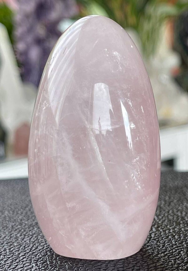 Rozenkwarts free form sculptuur uit Madagascar, staand, medium