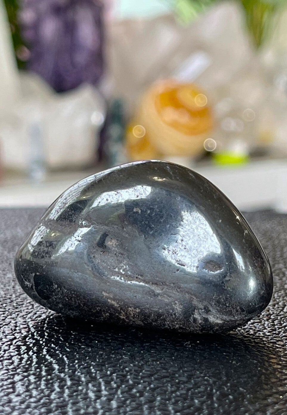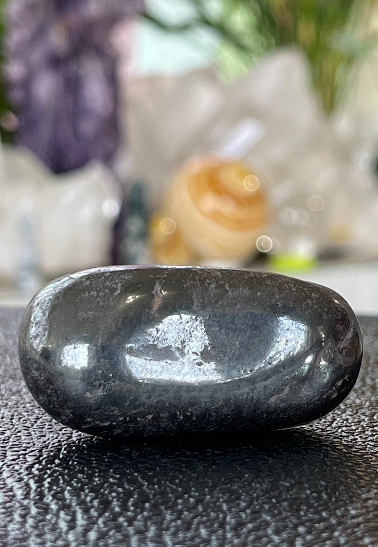 Hematiet is een sterk aardende, zuiverende en beschermende steen. Het absorbeert negatieve energie en (elektromagnetische) straling en laat dit de aarde instromen. Het zuivert en stabiliseert de aura en chakra’s en brengt hierdoor balans en brengt lichaam, geest en ziel in harmonie met elkaar.