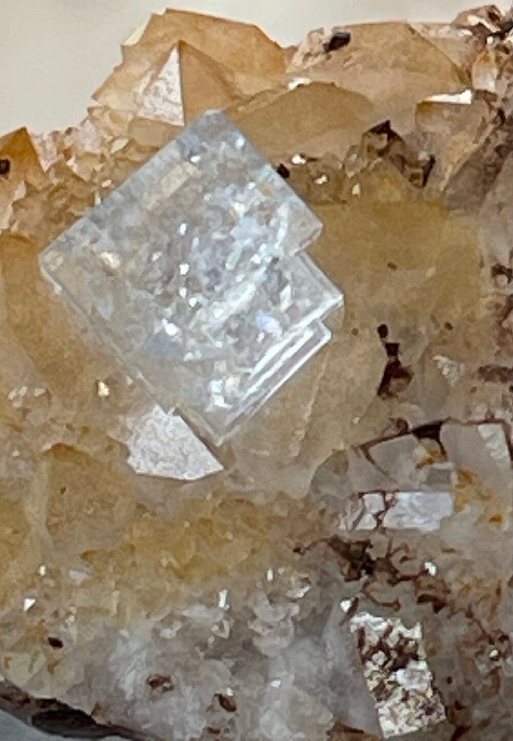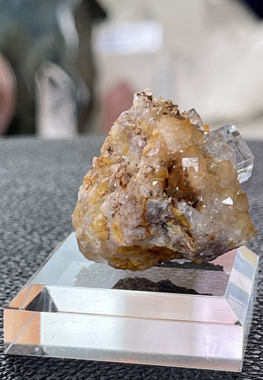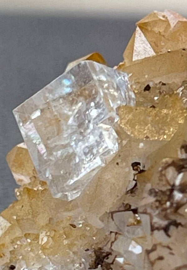 Witte Fluoriet op Bergkristal en Bariet ruw, klein