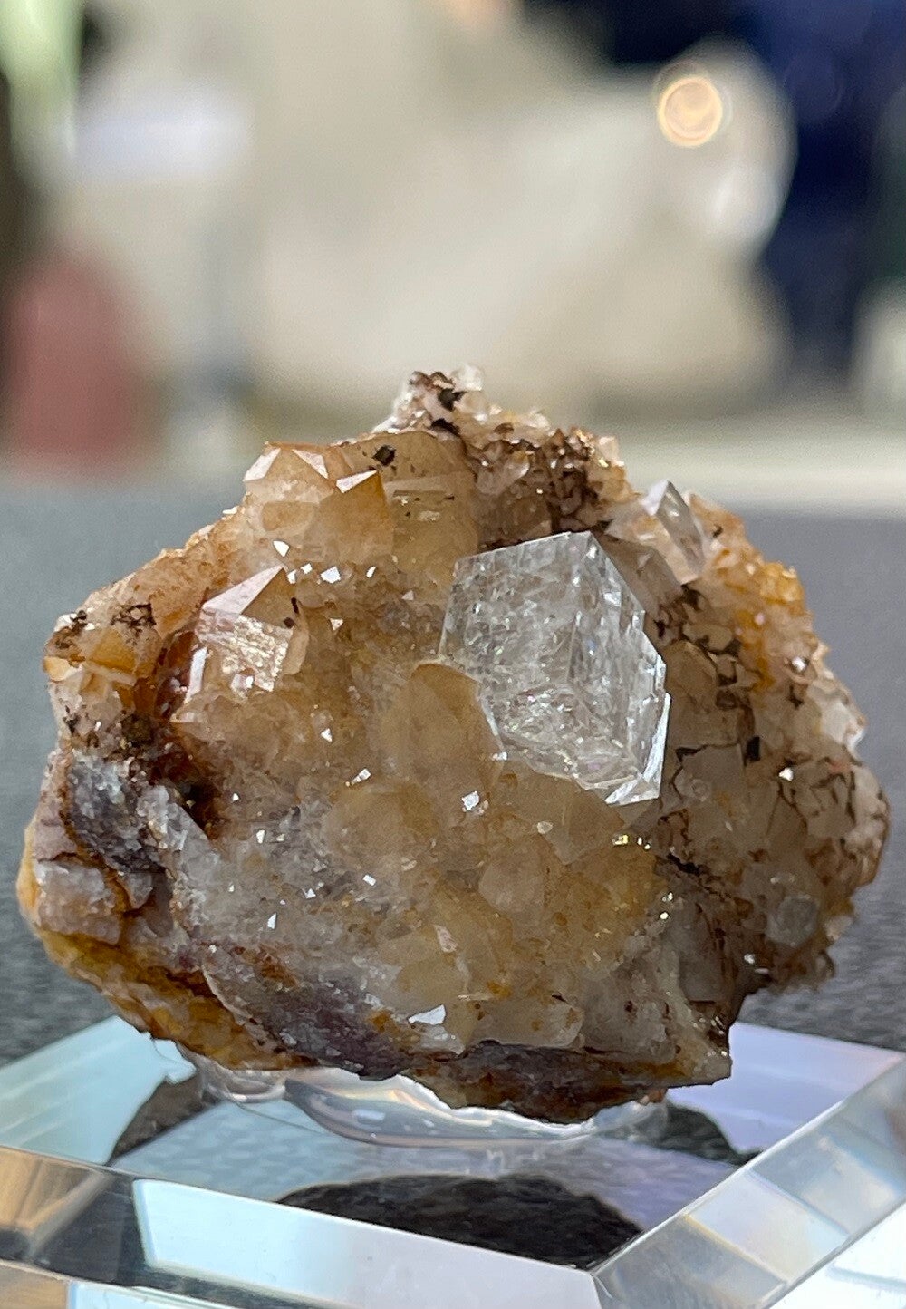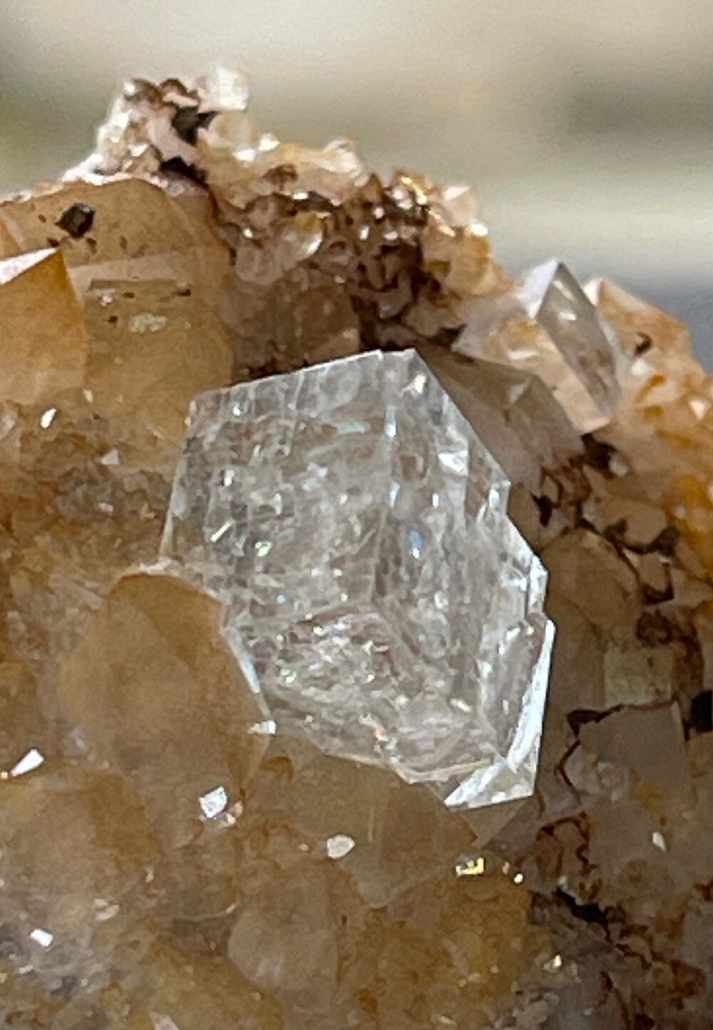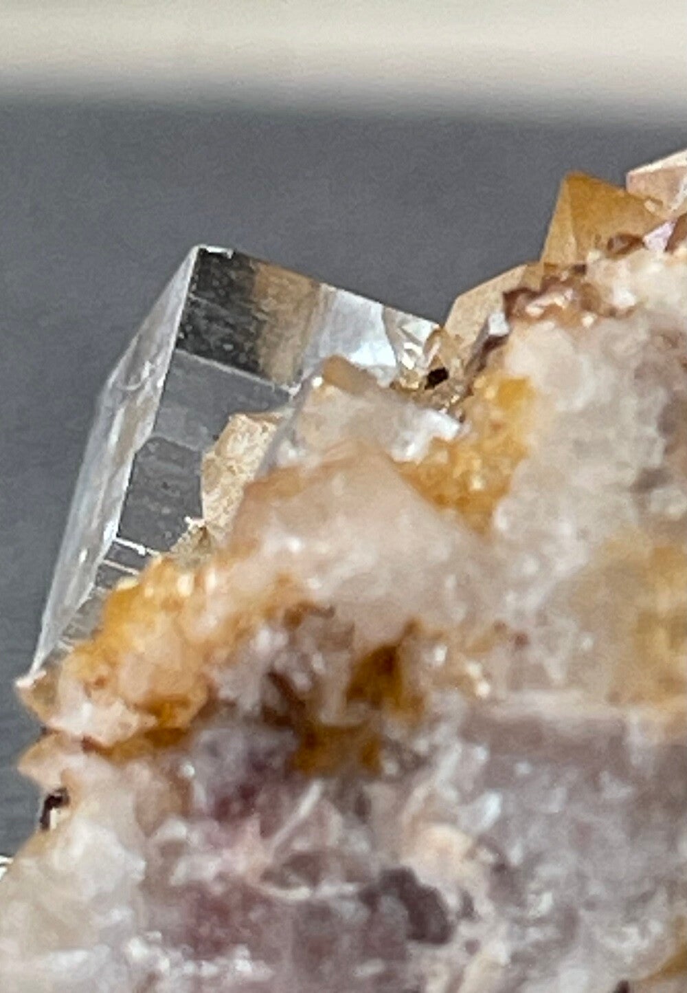Witte Fluoriet op Bergkristal en Bariet ruw, klein