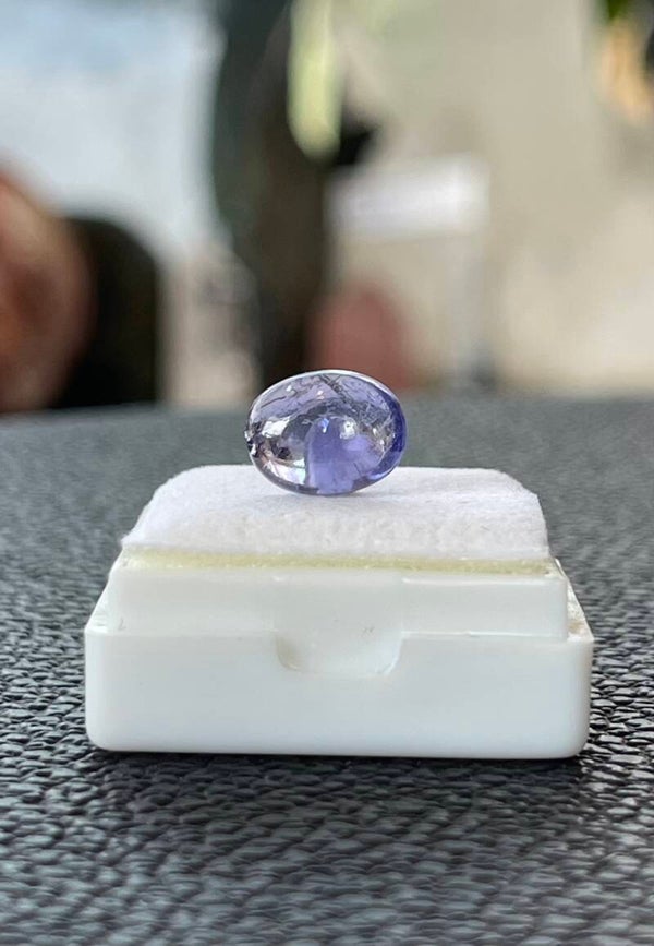 Tanzaniet edelsteen uit Tanzania, cabochon met vlakke achterkant ovaal met beetje inclusion, klein