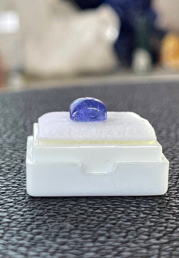 Tanzaniet edelsteen uit Tanzania, cabochon met vlakke achterkant rechthoek met beetje inclusion, klein