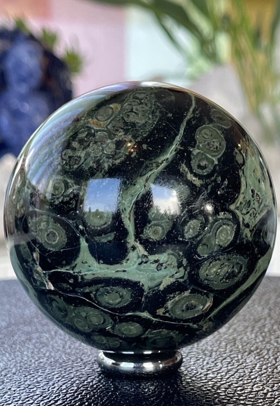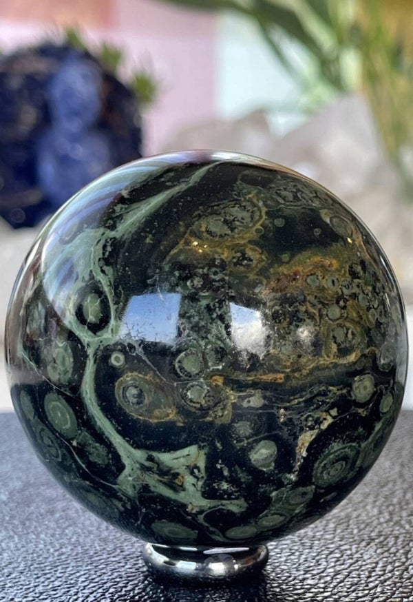 Kambaba Jaspis werkt aardend en beschermend. De steen helpt je je doelen waarmaken en ideeën omzetten in actie. Voor het doorbreken van angsten. Het maakt strijdlustig, daadkrachtig, volhardend, vastberaden en helpt je ergens voor 100% voor gaan.