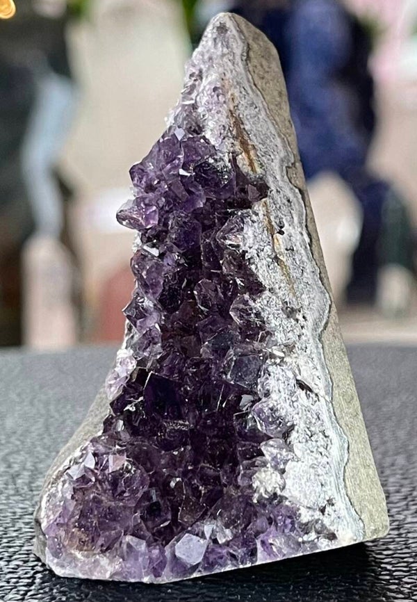 Amethist is vanwege haar reinigende werking ook heel geschikt om een ruimte te zuiveren. Samen met Bergkristal en Rozenkwarts creëert het een harmonische sfeer. Omdat het de bovenste chakra’s stimuleert, kan het de intuïtie, spirituele groei en inzichten bevorderen, zeker voor mensen die aan het begin staan van hun spirituele pad.