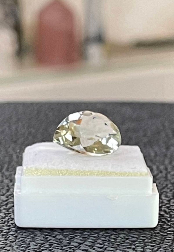 Prasioliet of groene Amethist edelsteen uit Brazilië, facet geslepen druppelvorm, meduim