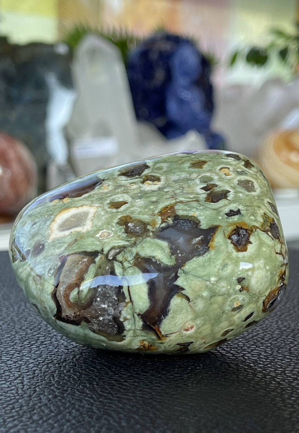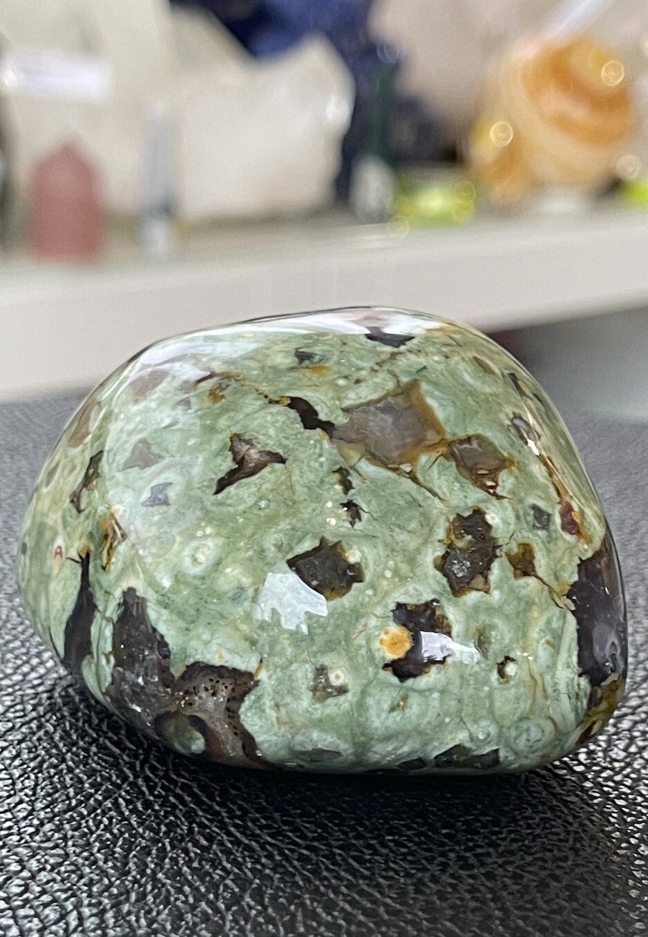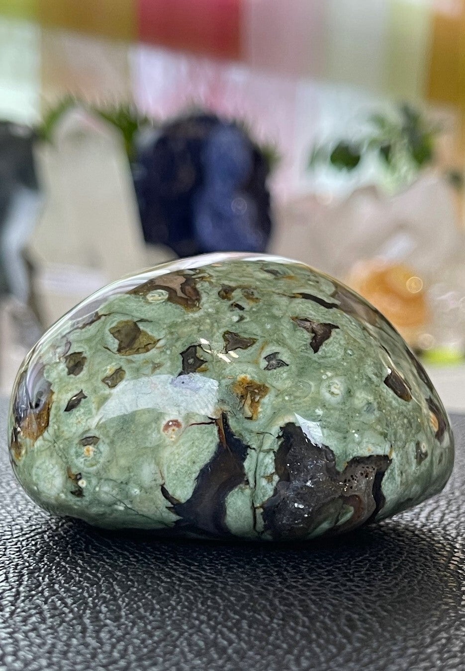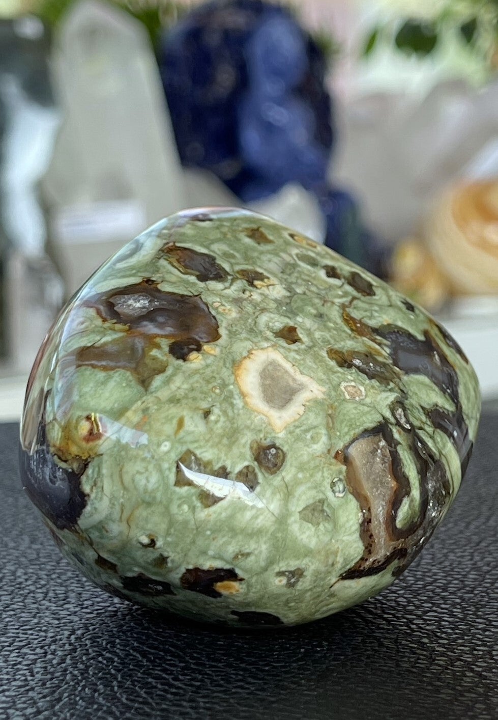 Rhyoliet bevordert zelfrespect, eigenwaarde en helpt je jezelf te accepteren zoals je bent. Het zorgt ervoor dat je sterk in je eigen kracht staat en in evenwicht bent. Hierdoor kun je beter omgaan met belastende situaties, veranderingen en problemen. De steen geeft een bepaalde helderheid van geest en schept duidelijkheid. Onevenwichtige emoties worden in balans gebracht.
