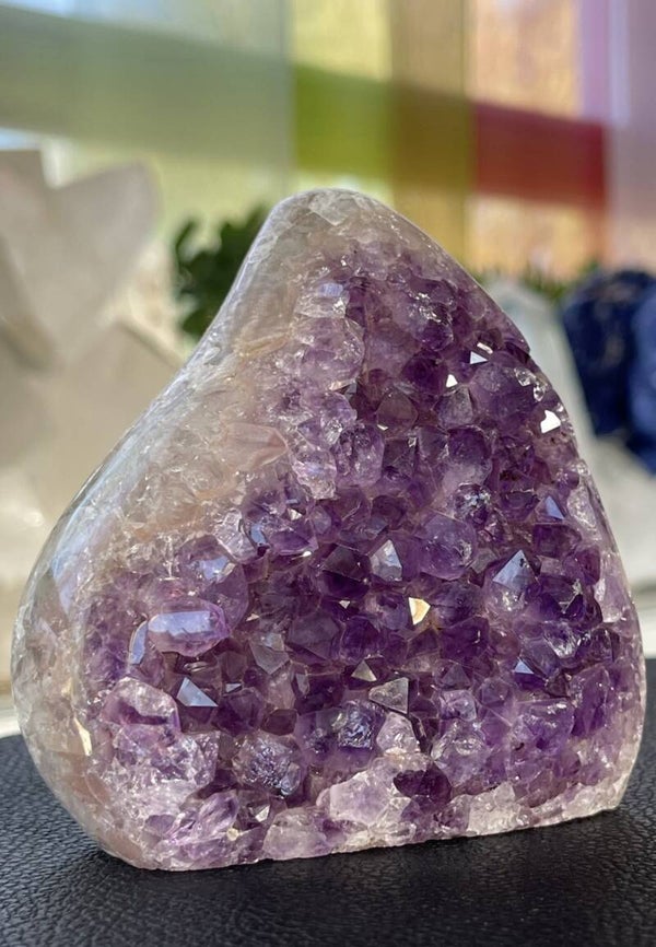 Amethist is vanwege haar reinigende werking ook heel geschikt om een ruimte te zuiveren. Samen met Bergkristal en Rozenkwarts creëert het een harmonische sfeer. Omdat het de bovenste chakra’s stimuleert, kan het de intuïtie, spirituele groei en inzichten bevorderen, zeker voor mensen die aan het begin staan van hun spirituele pad.