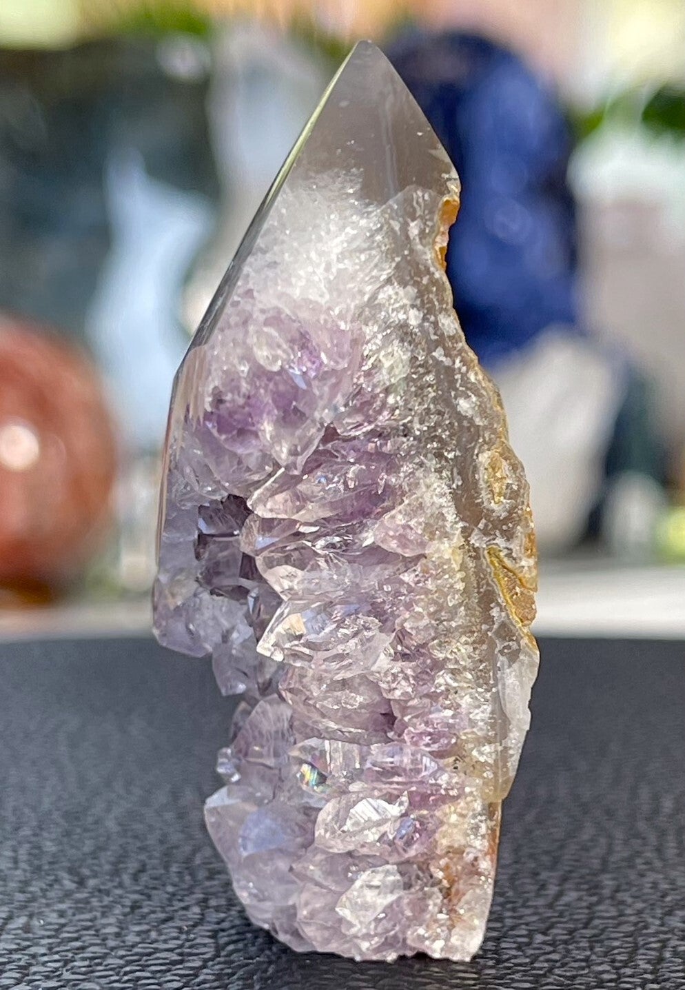 Amethist is vanwege haar reinigende werking ook heel geschikt om een ruimte te zuiveren. Samen met Bergkristal en Rozenkwarts creëert het een harmonische sfeer. Omdat het de bovenste chakra’s stimuleert, kan het de intuïtie, spirituele groei en inzichten bevorderen, zeker voor mensen die aan het begin staan van hun spirituele pad.