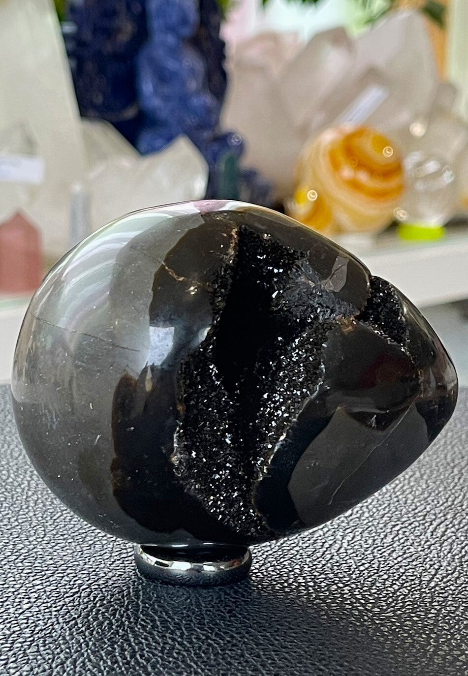 Septarie is een aardende, zuiverende en kalmerende steen met een sterke connectie met de aarde en de natuur. Helpt bij ergernis en frustratie, bij verbittering. De steen bevordert eigenwaarde, daadkracht, uithoudingsvermogen, geduld, tolerantie en zorgzaamheid.
