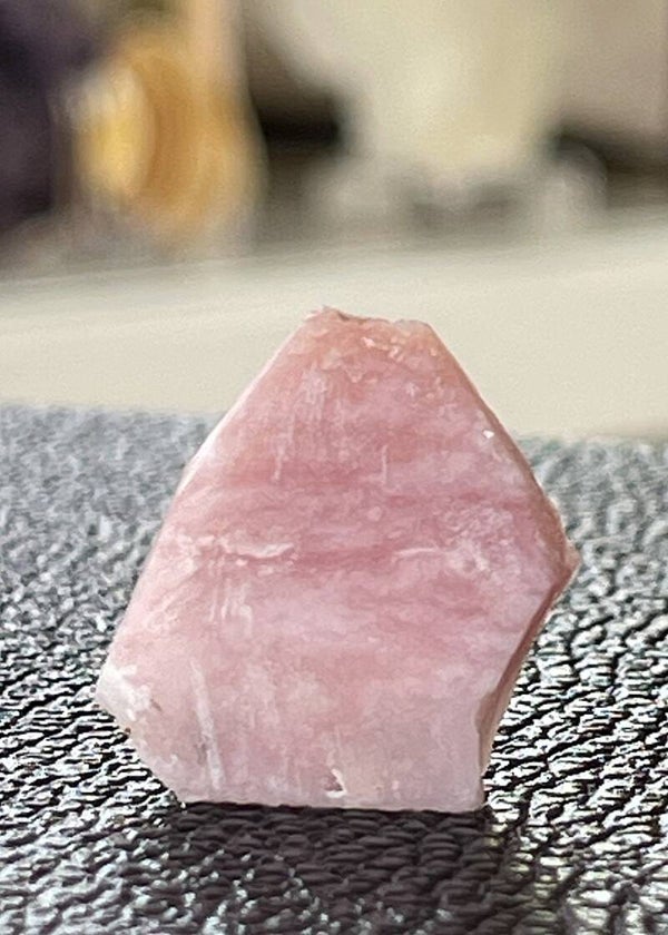 Plat stukje roze Andes Opaal uit Peru, gepolijst en ruw, klein