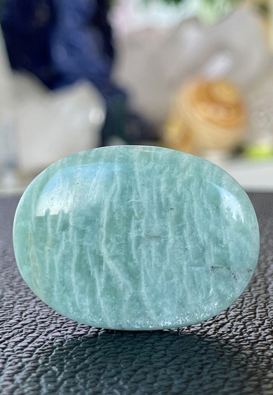 Prachtige Amazoniet platte knuffelsteen of zaksteen