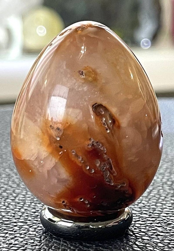 De steen helpt stress en problemen op te lossen. Carneool zorgt ervoor dat je leven en dood kunt accepteren zoals die komen en laat je angst voor de dood verdwijnen. Het maakt je luchtiger en vrolijker en laat je onderdeel voelen van het grote geheel.