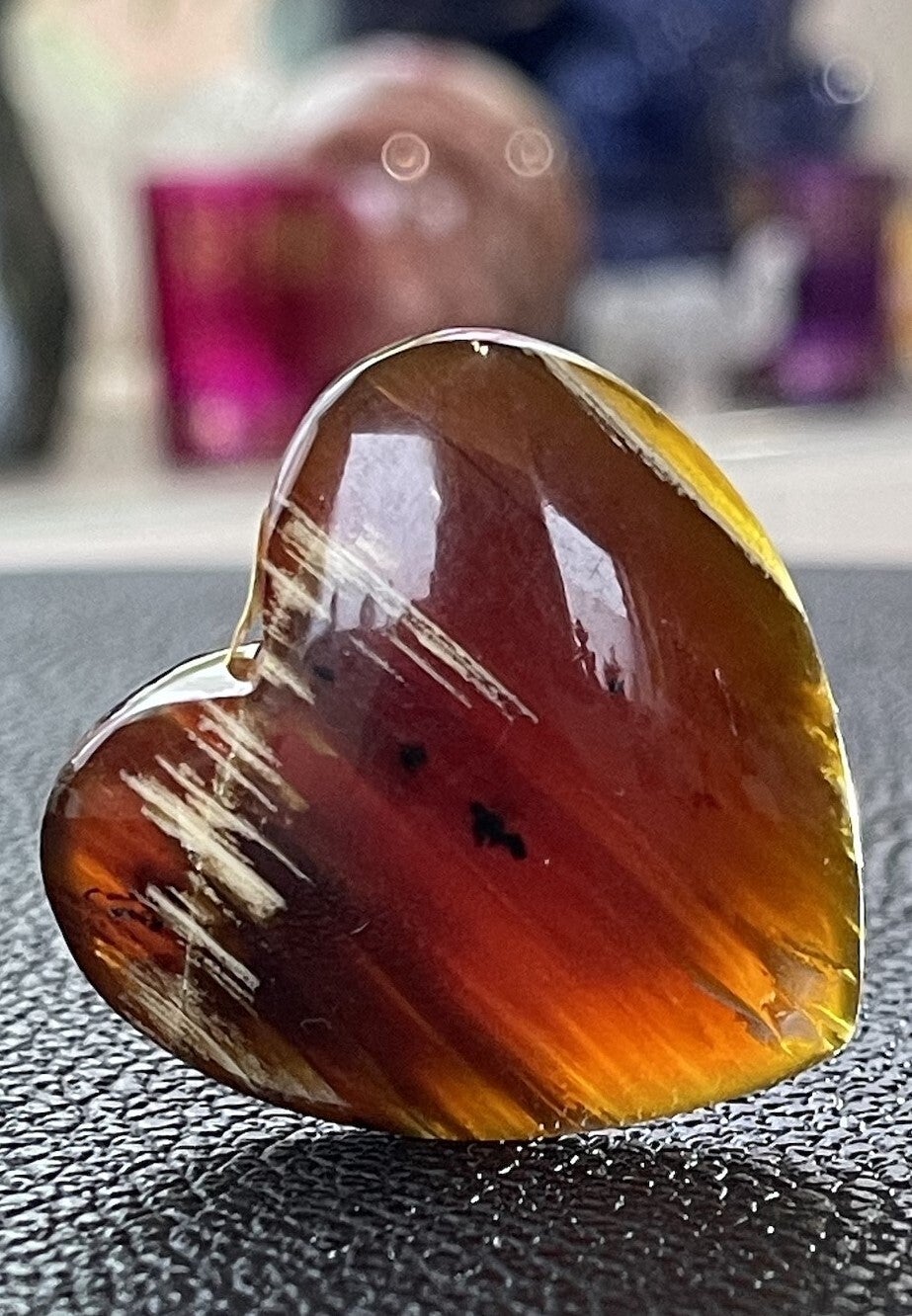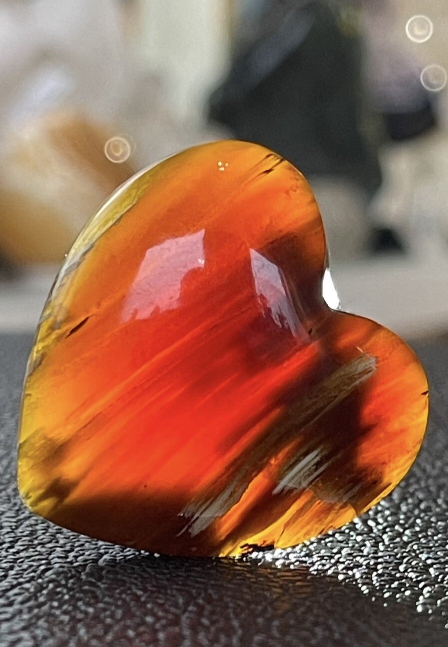 Tegen het licht gehouden krijgt de Barnsteen een rode of oranje kleur