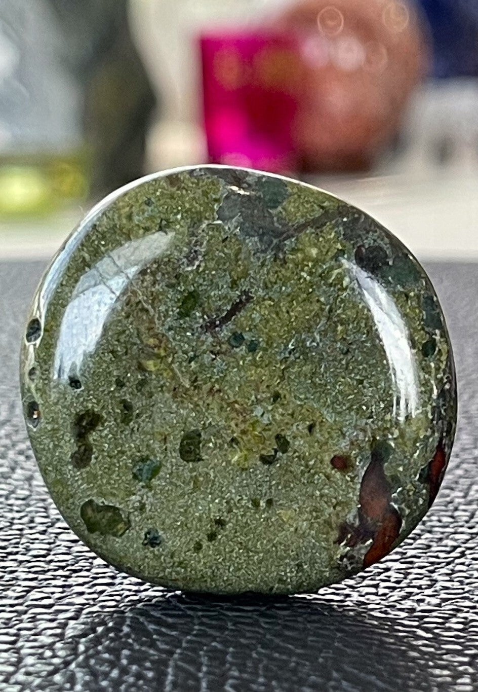 Drakenbloed Jaspis platte knuffelsteen of zaksteen