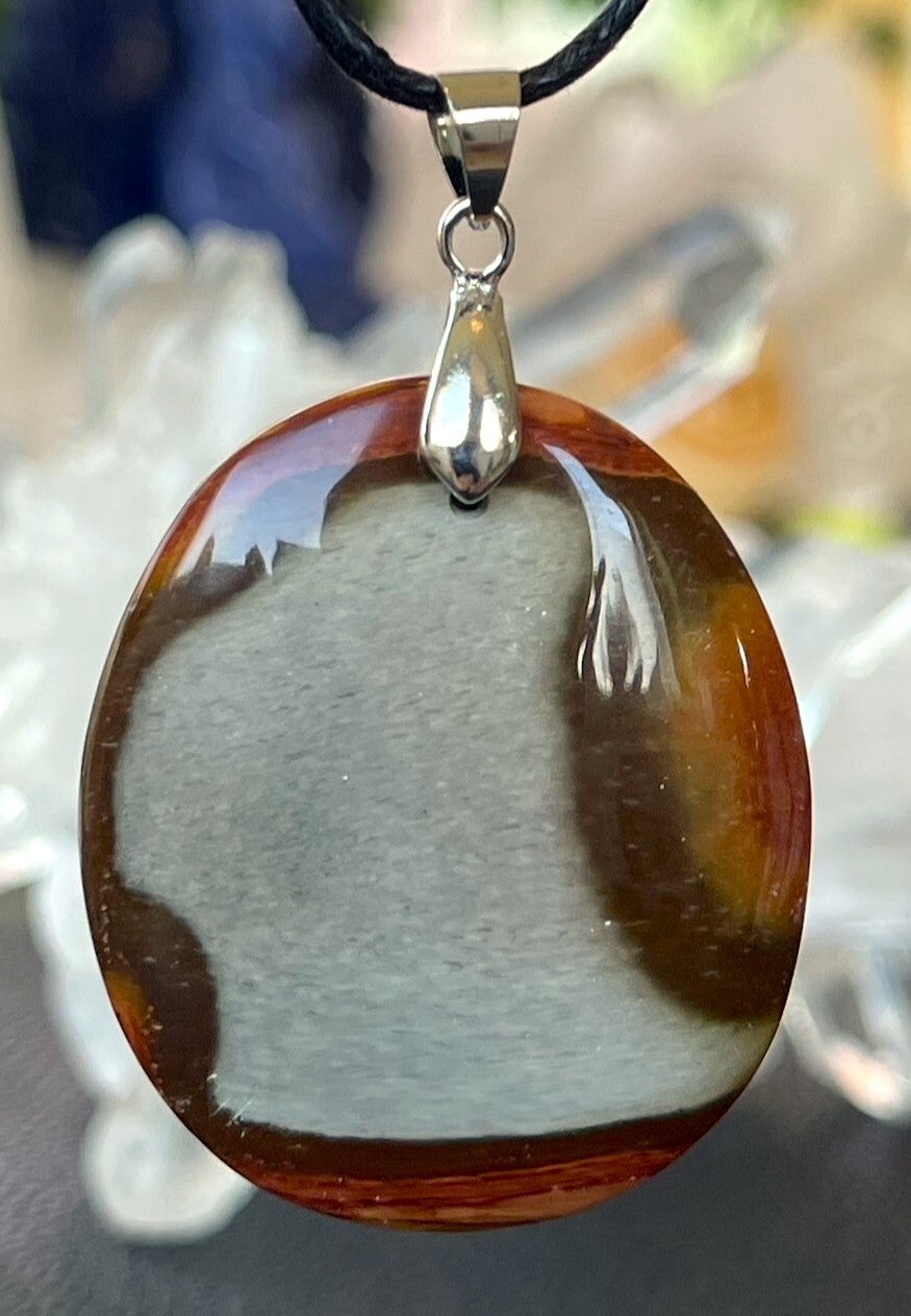 Polychroom Jaspis hanger, groot ovaal, met veter