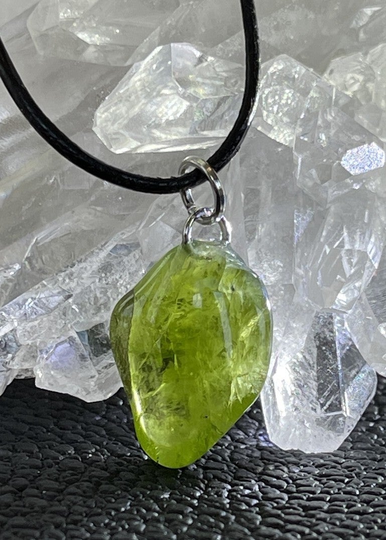 Peridoot maakt contact met de bron van overvloed, brengt spirituele waarheid, maakt het lot inzichtelijk. Het verwijdert karmische stukken die te maken hebben met eigenliefde, angst, schuld en verantwoordelijkheid.