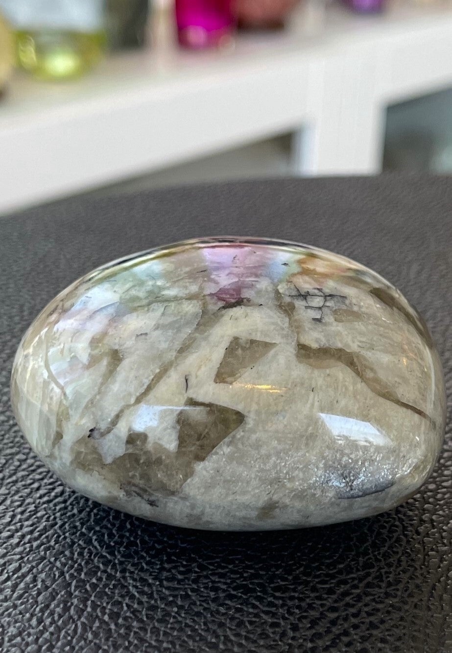 De steen heeft een zeer positieve werking op alle chakra's. Het heeft een kalmerende en rustgevende werking op het hart en de geest. Even bijkomen met een mooie steen van Zebra Veldspaat in je handen kan een echt vredig rustmoment zijn in alle drukte van de dag!