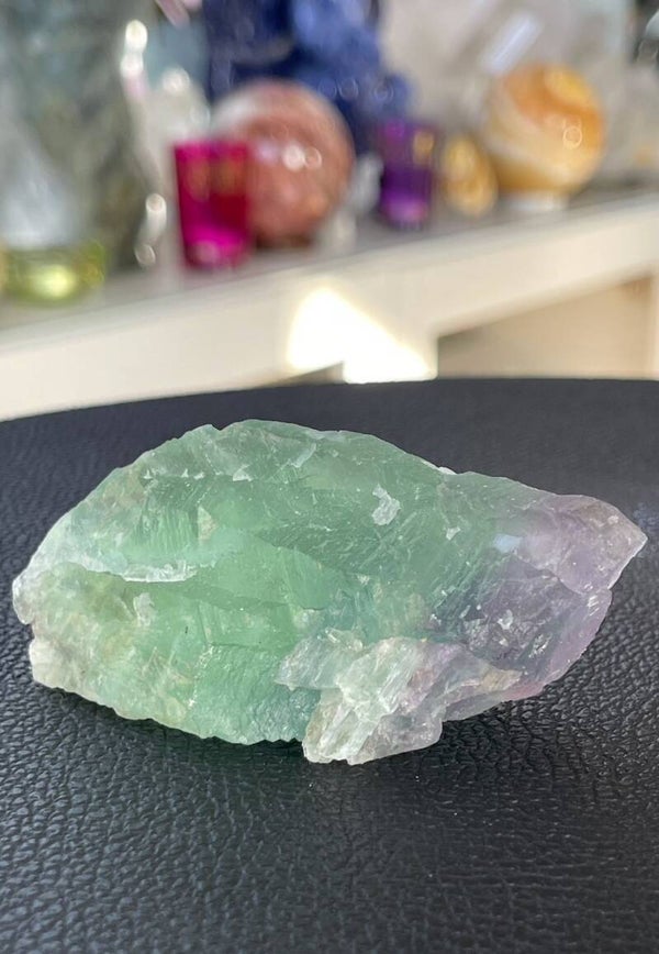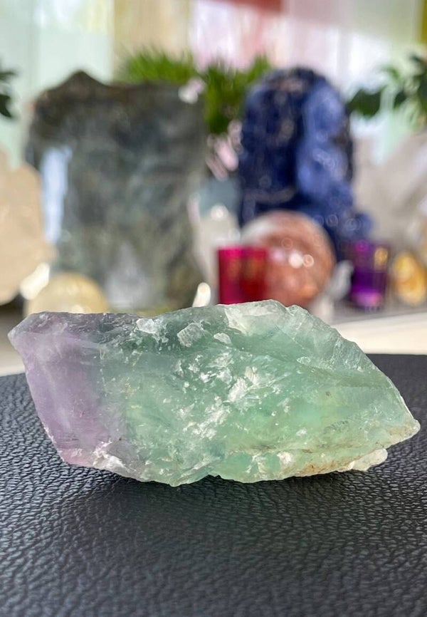 Fluoriet werkt beschermend, reinigend en stabiliserend. Beschermt tegen negatieve energie, straling van bijvoorbeeld mobiele telefoons en computers en andere negatieve invloeden van buitenaf.