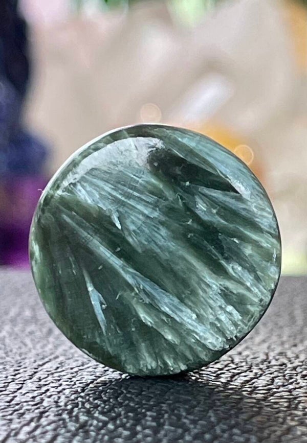 Prachtige Serafiniet edelsteen cabochon rond met vlakke achterkant, medium