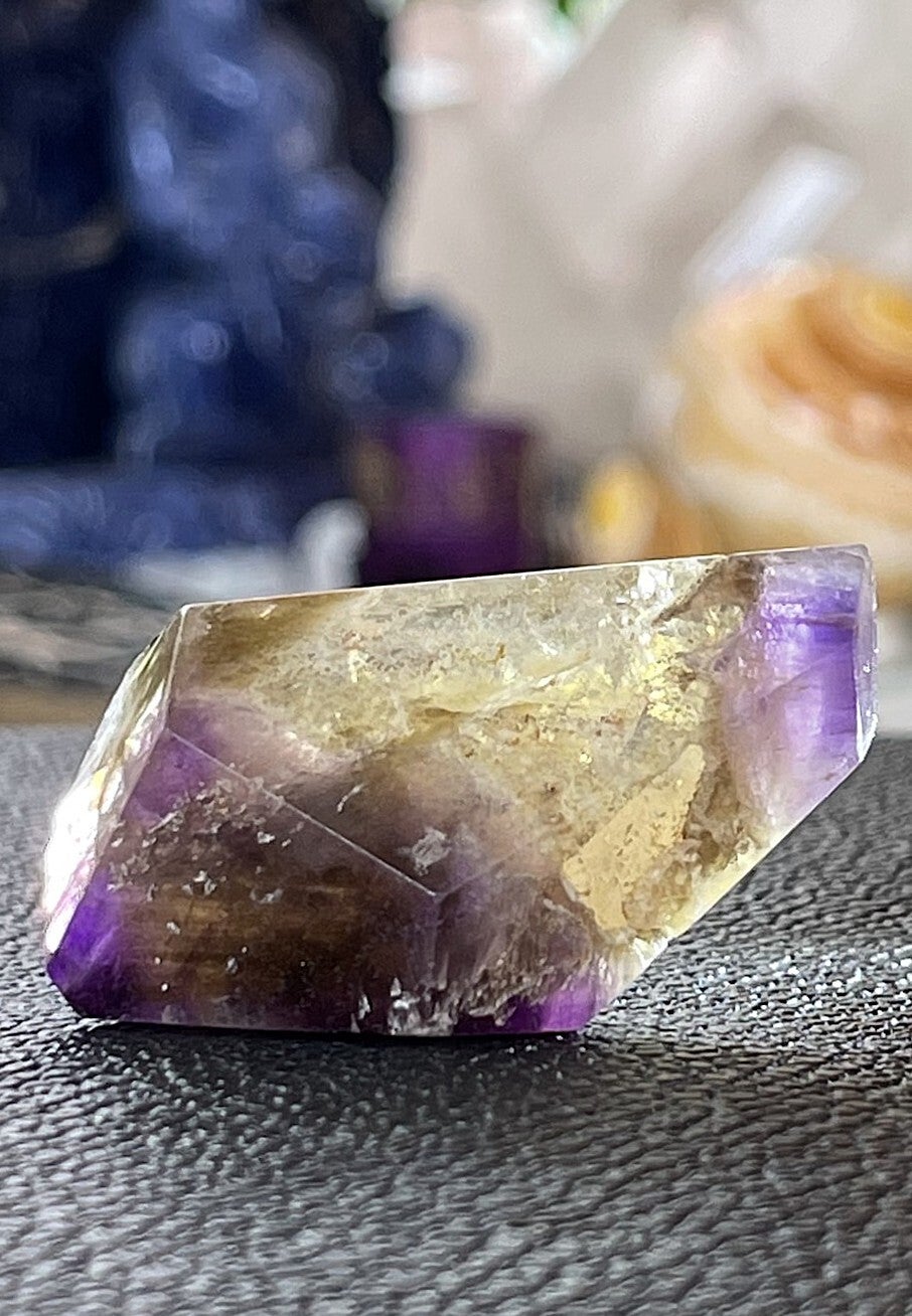 Dreamcoat Lemurische Kwarts uit Goías, Brazilië, gepolijste free form punt, klein