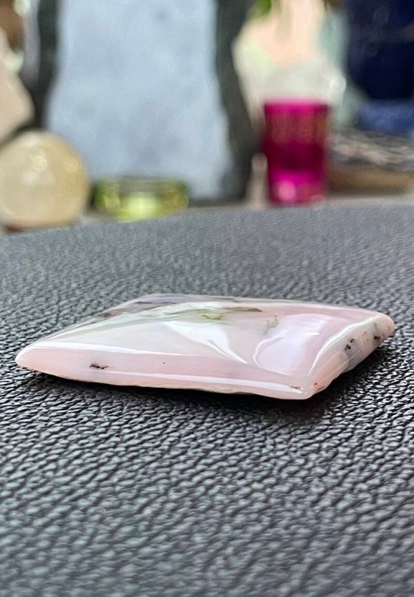 Roze Opaal met Dendriet edelsteen cabochon met vlakke achterkant vierkant, groot