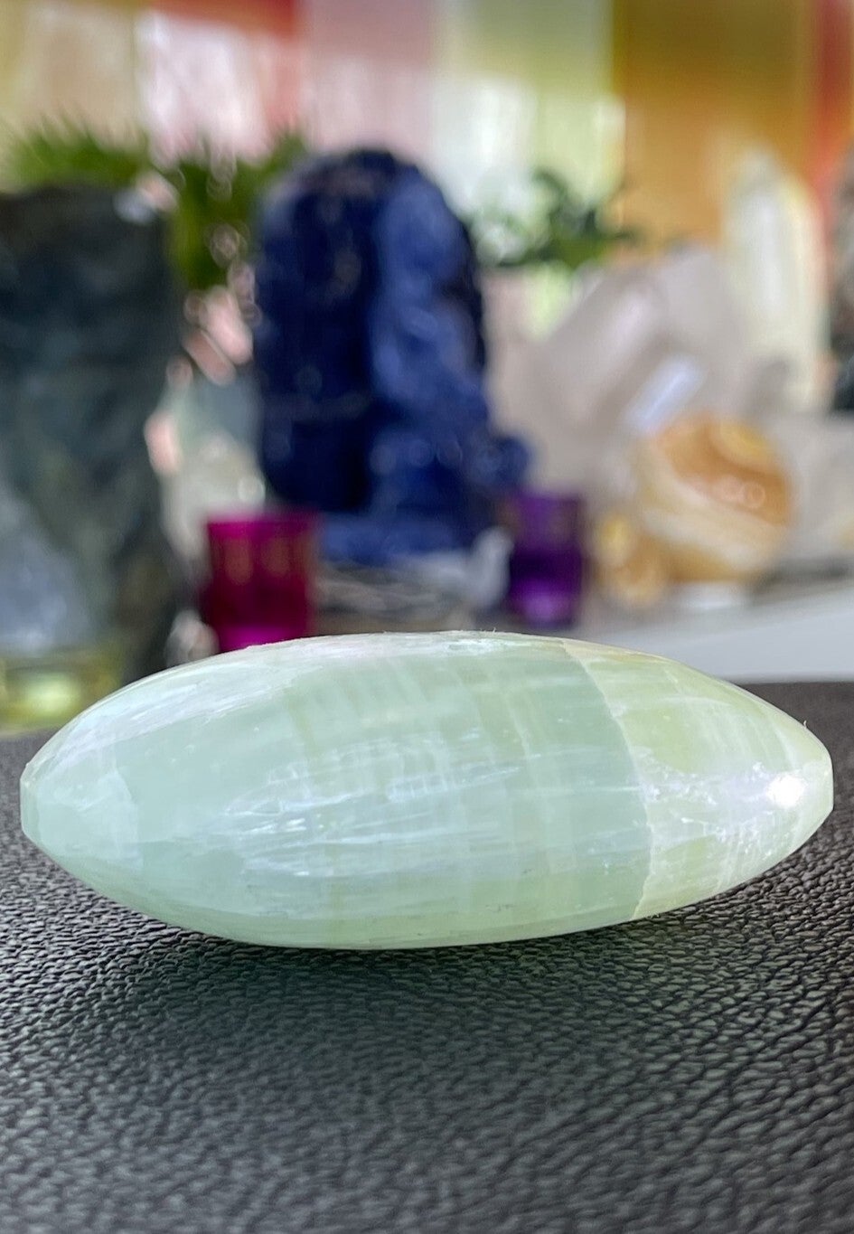 Groene Calciet maakt, naast de algemene eigenschappen van Calciet flexibel en helpt bij het loslaten van oude denk- en gedragspatronen. Het herstelt de emotionele balans en maakt positief en optimistisch.