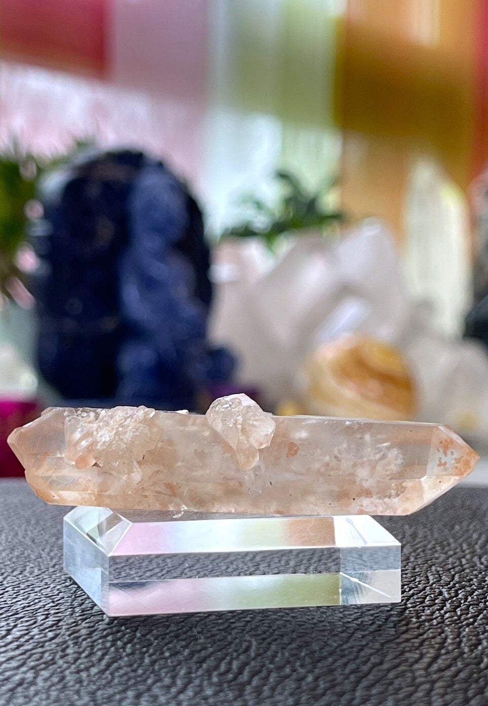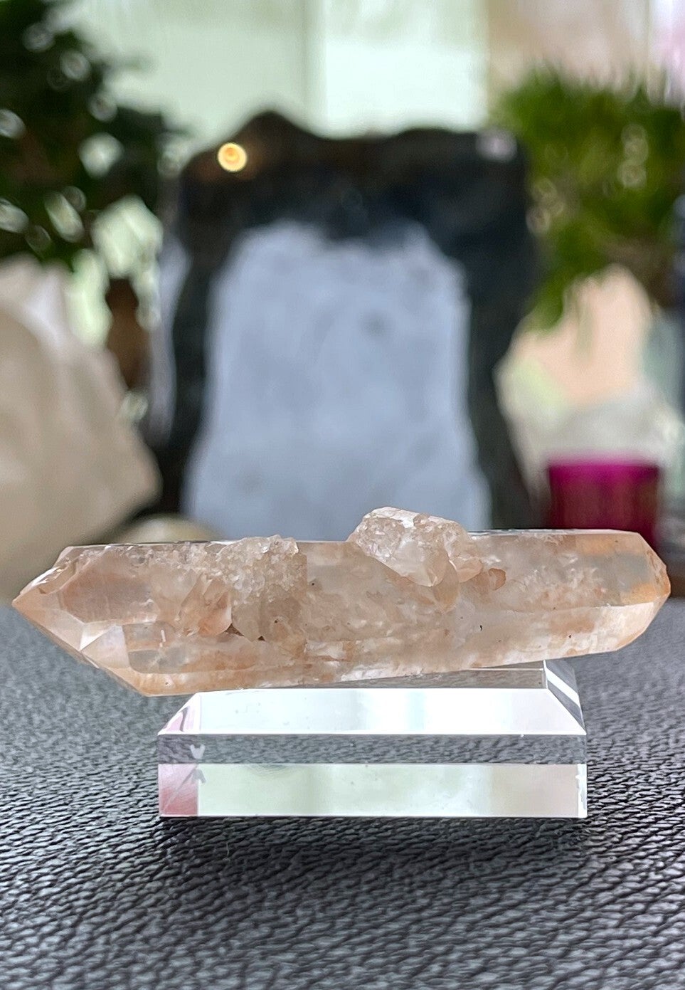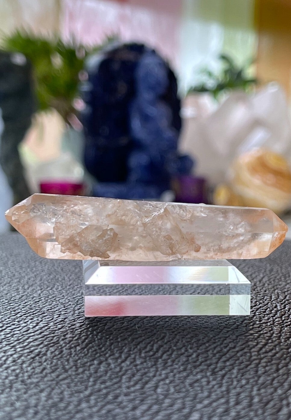 Pink Lemurian Laser Tangerinekwarts dubbeleinder punt ruw, uit Brazilië, medium