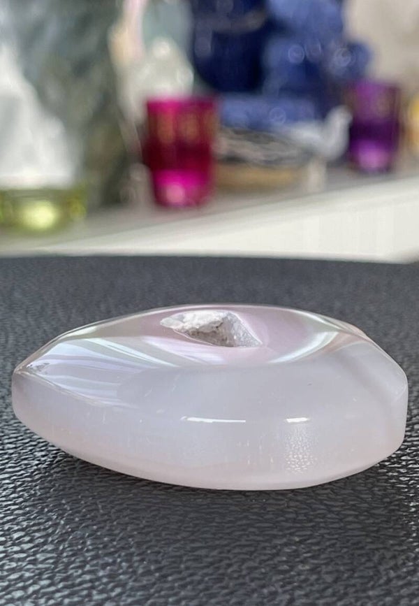 Prachtig plat Agaat hartje met open gekristalliseerd deel, medium