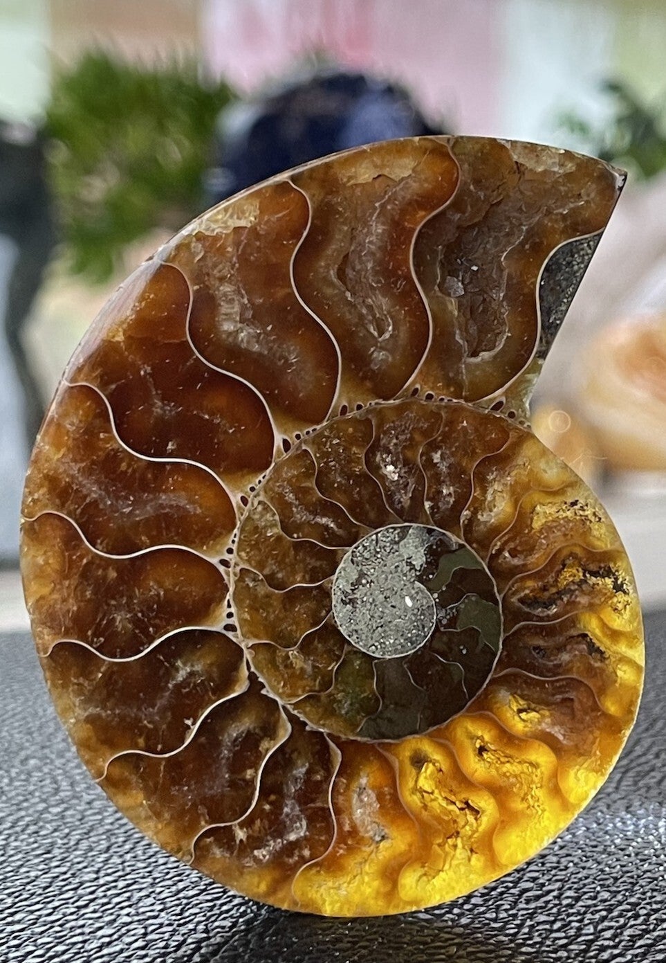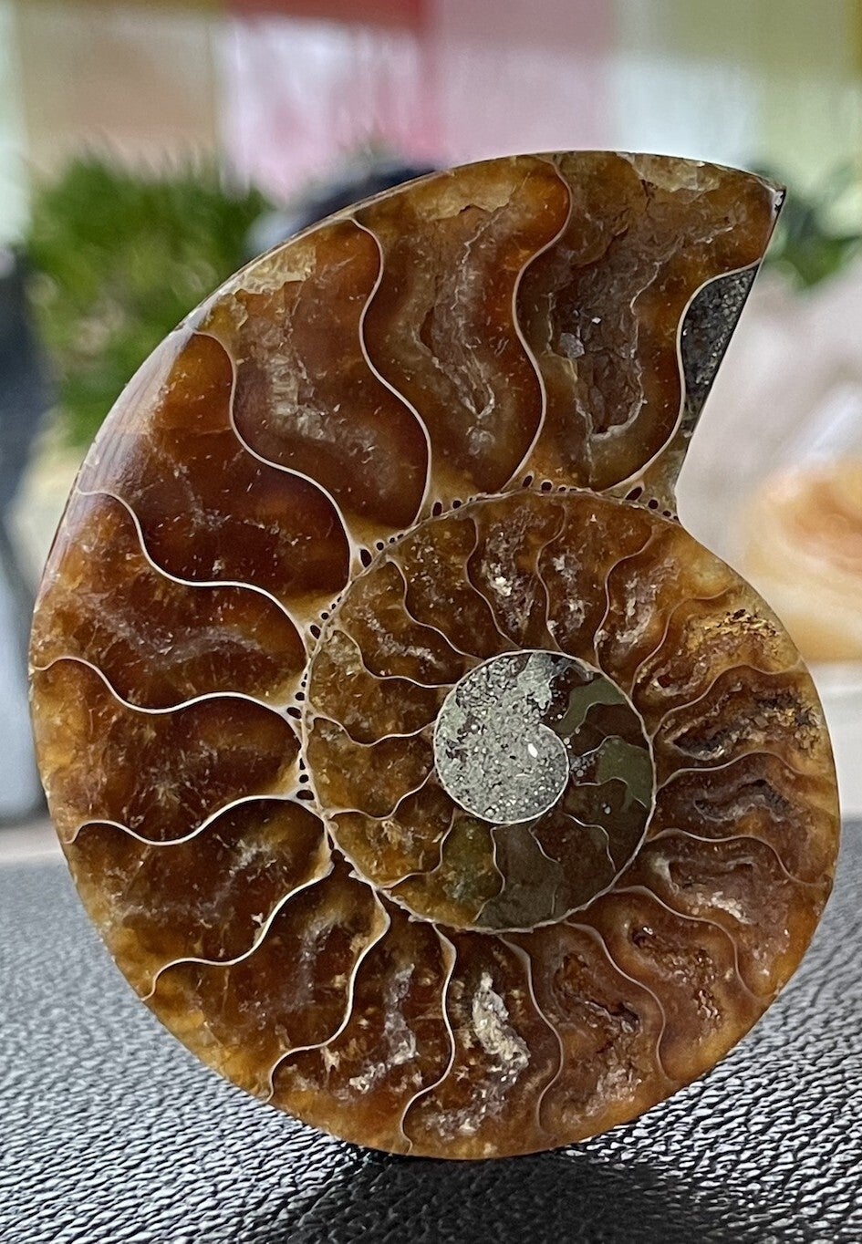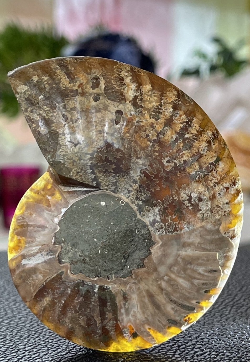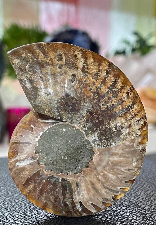 Ammoniet fossiel, één zijde gepolijst