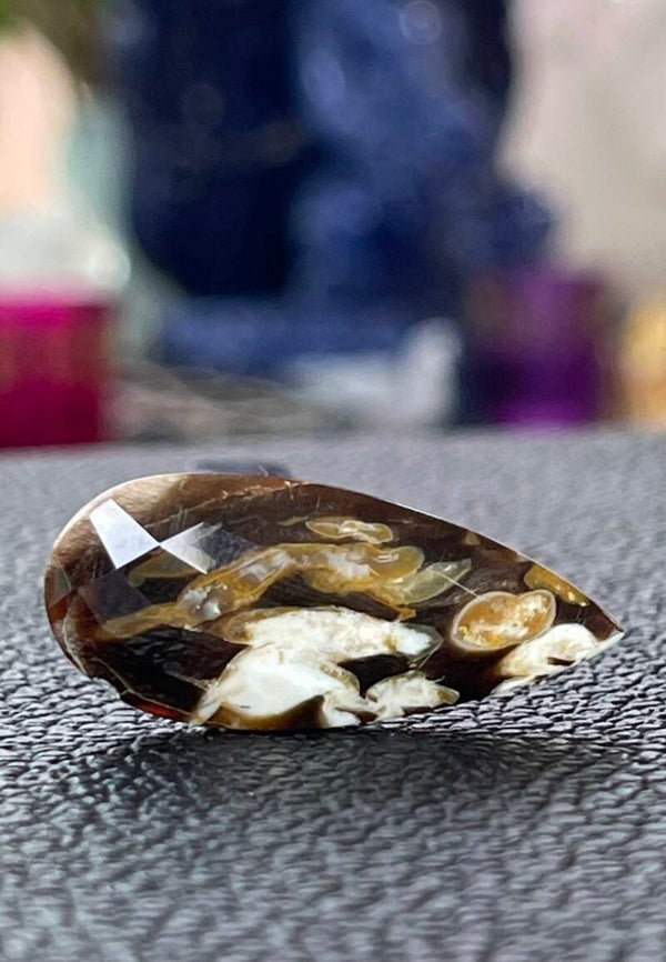 Peanutwood edelsteen facet geslepen met vlakke achterkant lange druppel, medium