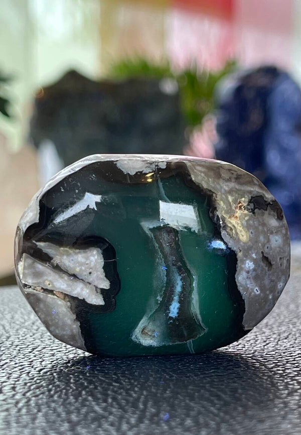 Vulkaan Agaat is een krachtige steen die zorgt voor aarding, stabiliteit en veiligheid. Het reinigt en stabiliseert de aura. En biedt daarmee een goede basis voor ontwikkeling van de intuïtie, ondersteunt innerlijke verkenning en spirituele groei en helpt bij diepgaande transformatie.