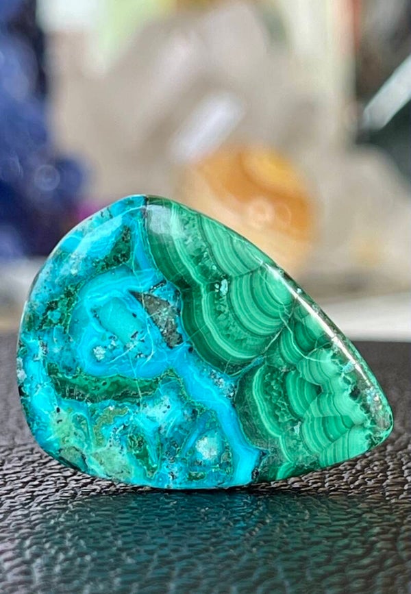 Chrysocolla Malachiet edelsteen cabochon met vlakke achterkant druppel uit Congo, medium