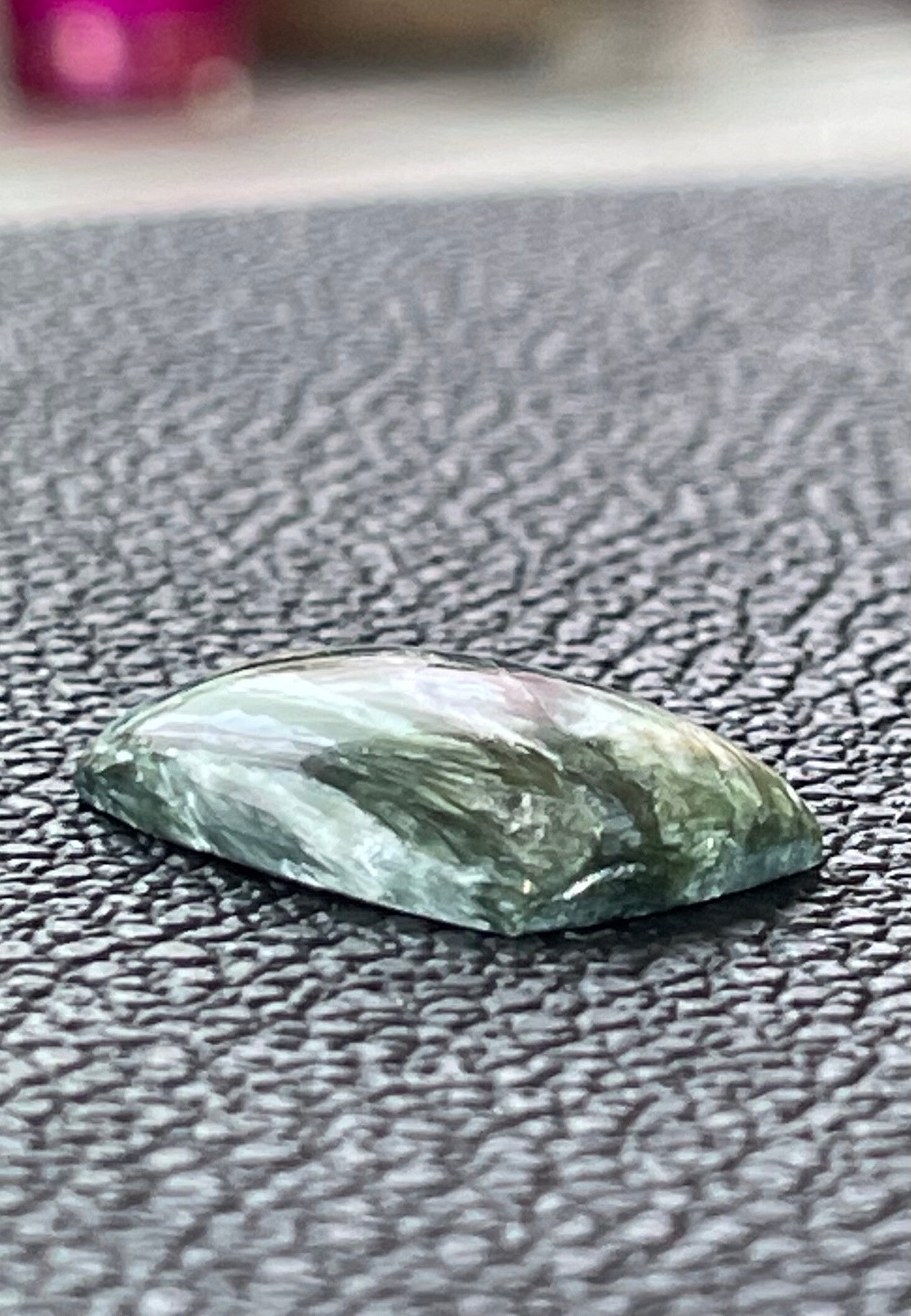Prachtige Serafiniet edelsteen cabochon rechthoekig met vlakke achterkant, medium