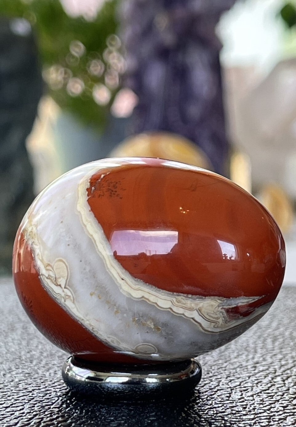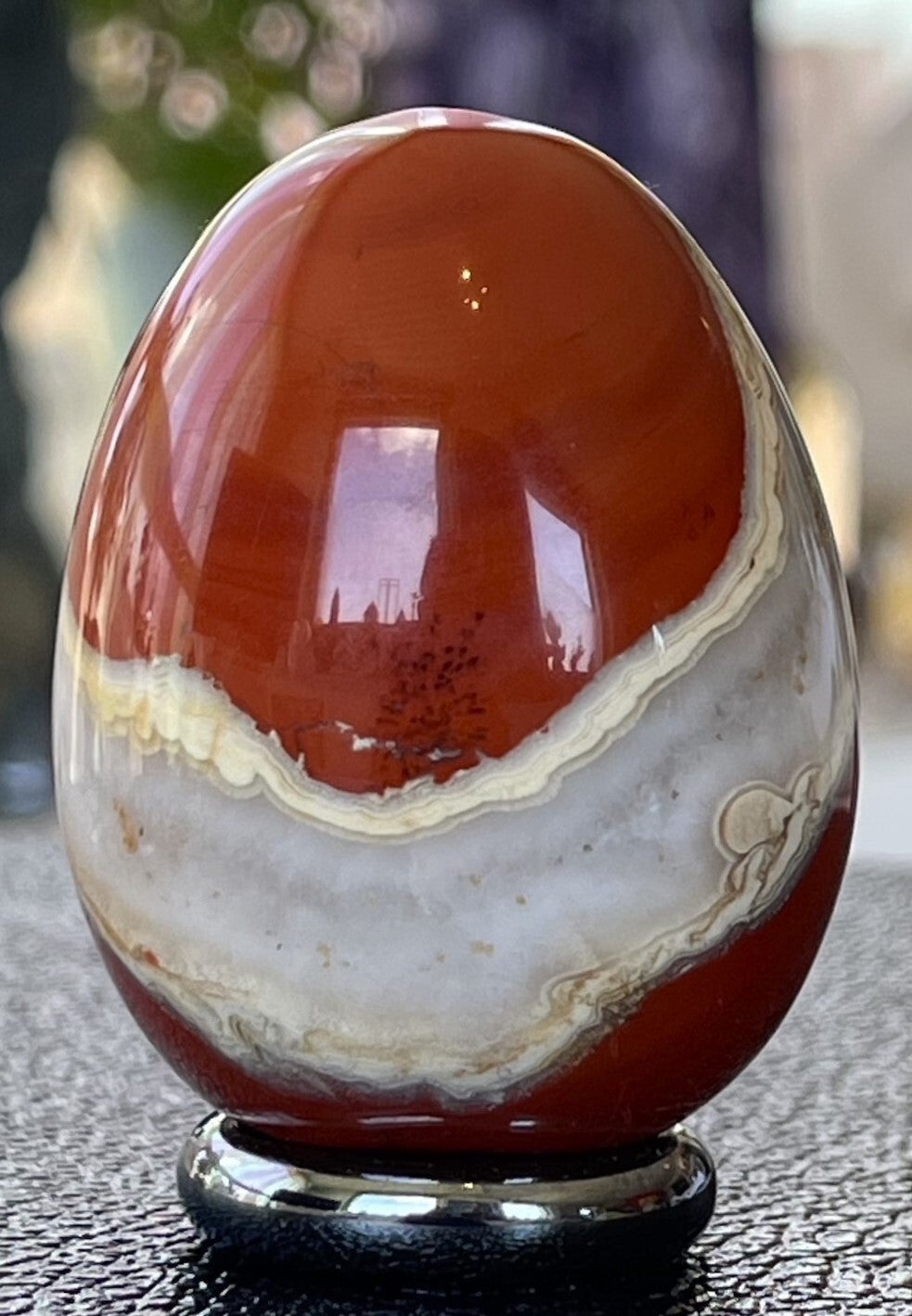 Rode Jaspis ei uit Madagaskar met gekristalliseerd deel, normaal formaat, medium