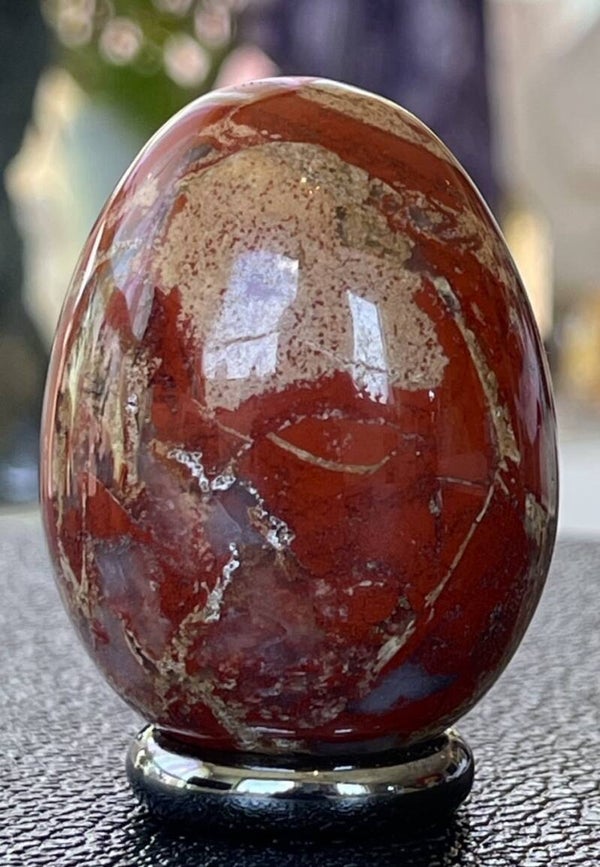Rode Jaspis ei uit Madagaskar met gekristalliseerde delen, normaal formaat, medium