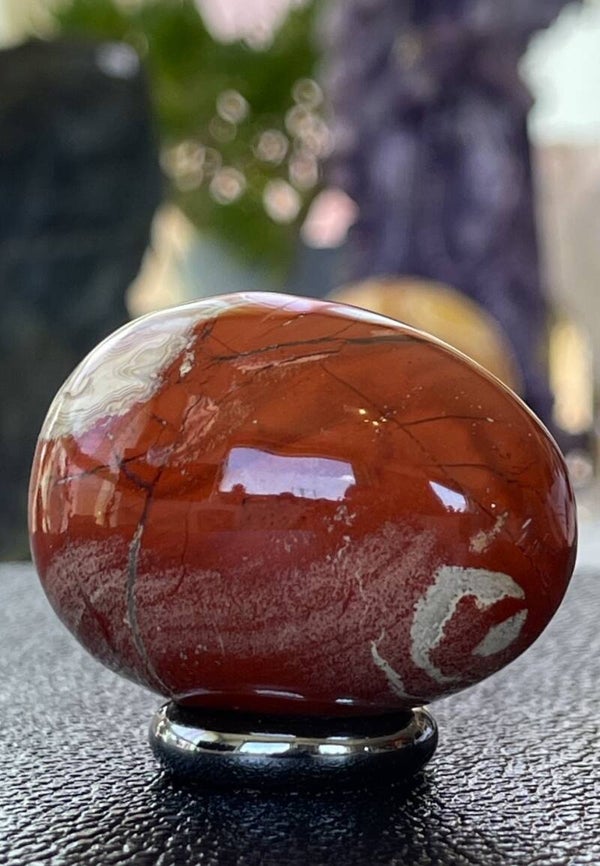 De steen werkt verwarmend en voorziet het lichaam van energie. Het helpt je in je kracht staan en bevordert wilskracht en doorzettingsvermogen. Rode Jaspis heeft een positieve werking op het bloed, werkt ontgiftend, stimuleert de werking van de lever en de stofwisseling.