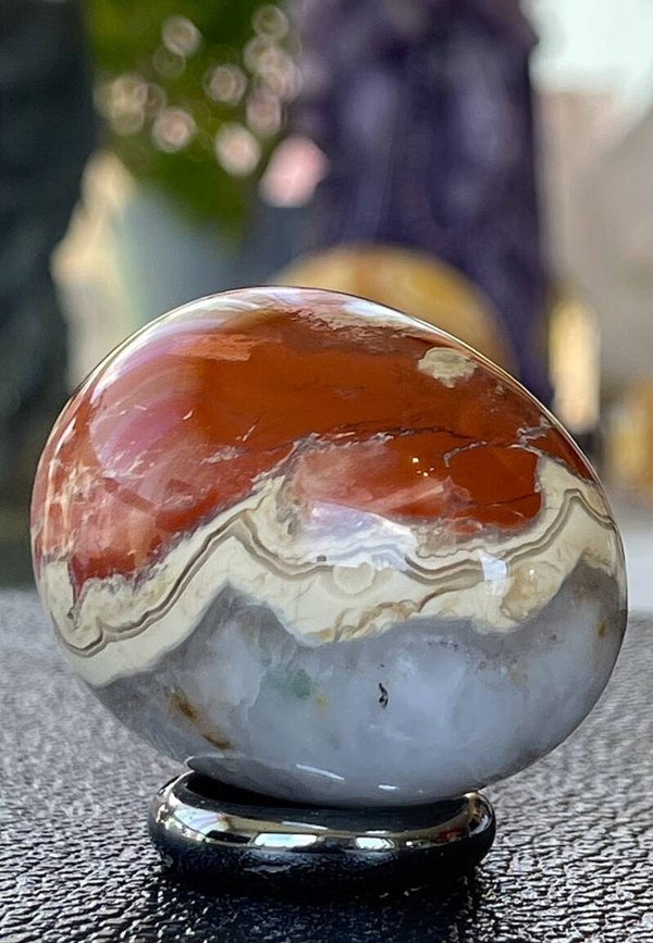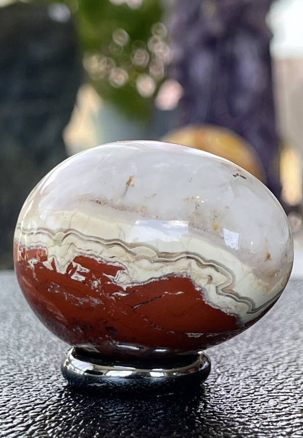 Rode Jaspis ei uit Madagaskar met gekristalliseerd deel, normaal formaat, medium