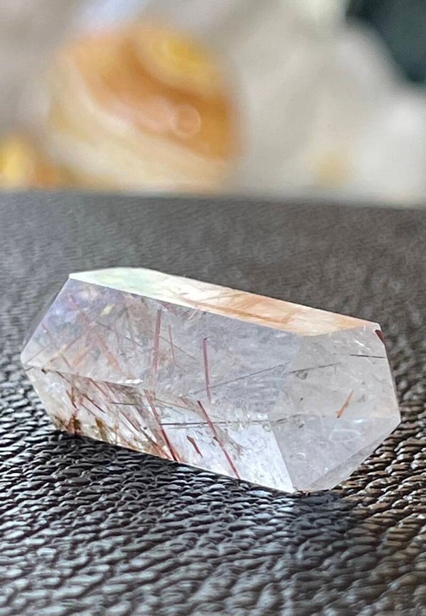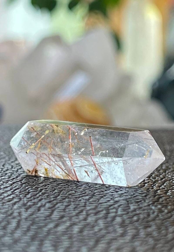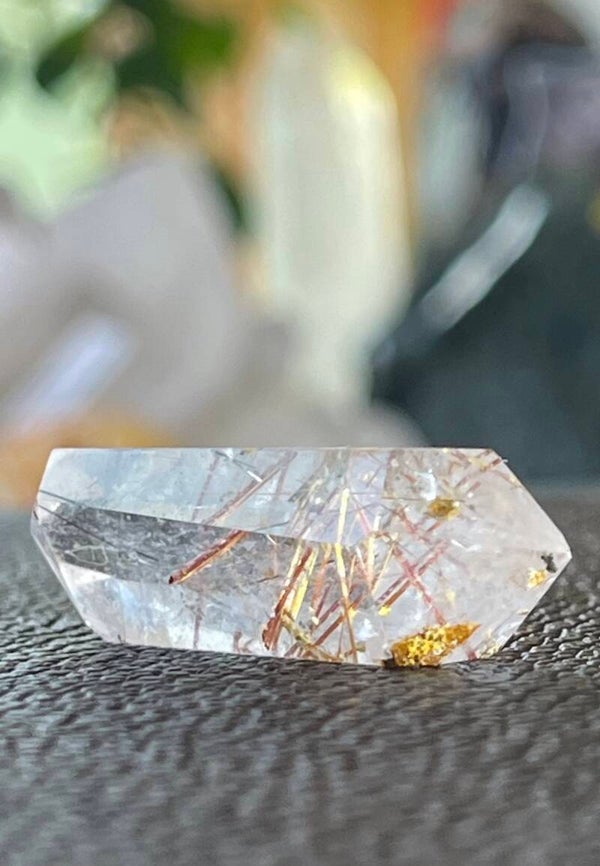 Gouden Rutielkwarts dubbeleinder punt uit Brazilië gepolijst, klein