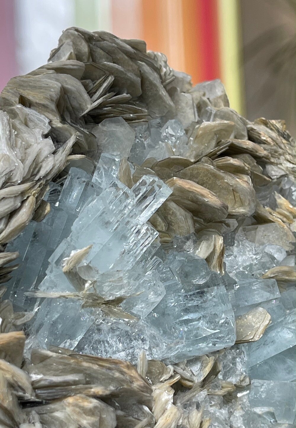 Aquamarijn met mica uit Pakistan ruw, medium-groot