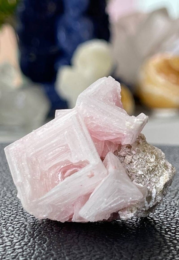 Zeldzaam ruw stukje roze Haliet op Trona matrix uit Owens Valley, Owens Lake, Olancha, Inyo County, California, USA, klein tot medium