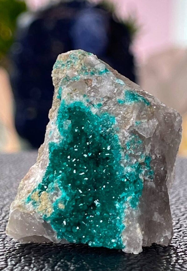 Ruw stukje Dioptaas uit Congo, gekristalliseerd, klein