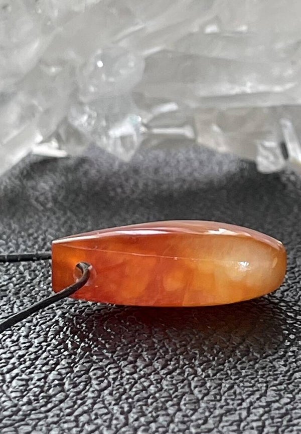 Carneool hangertje doorboord druppel, met veter