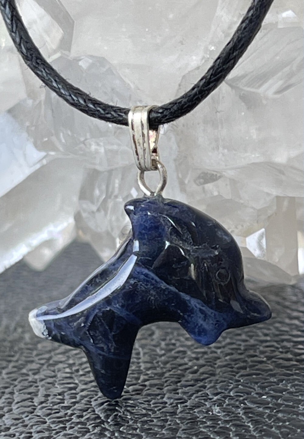 Mooie Sodaliet dolfijntje hanger, met veter, klein