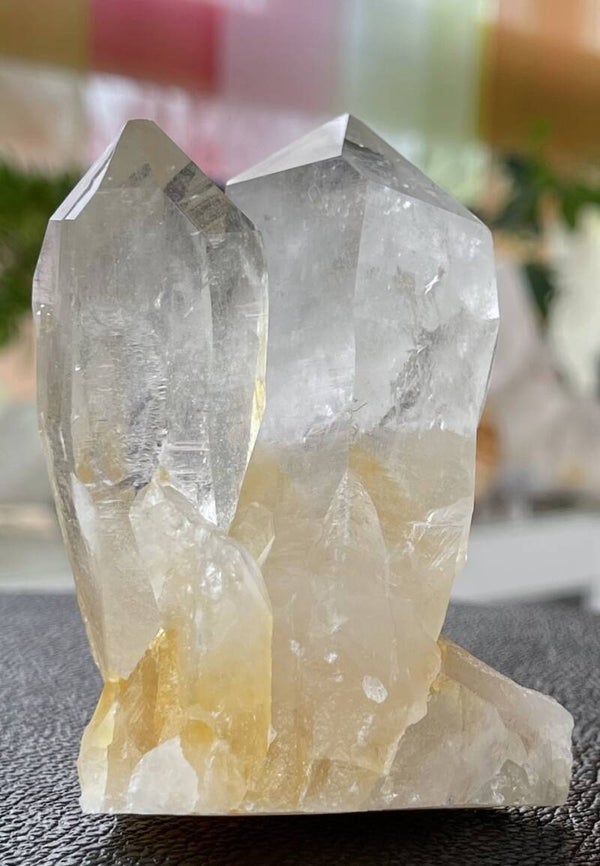 Golden Healer is een combinatie van heldere kristal met goudgele Kwarts en Hematiet